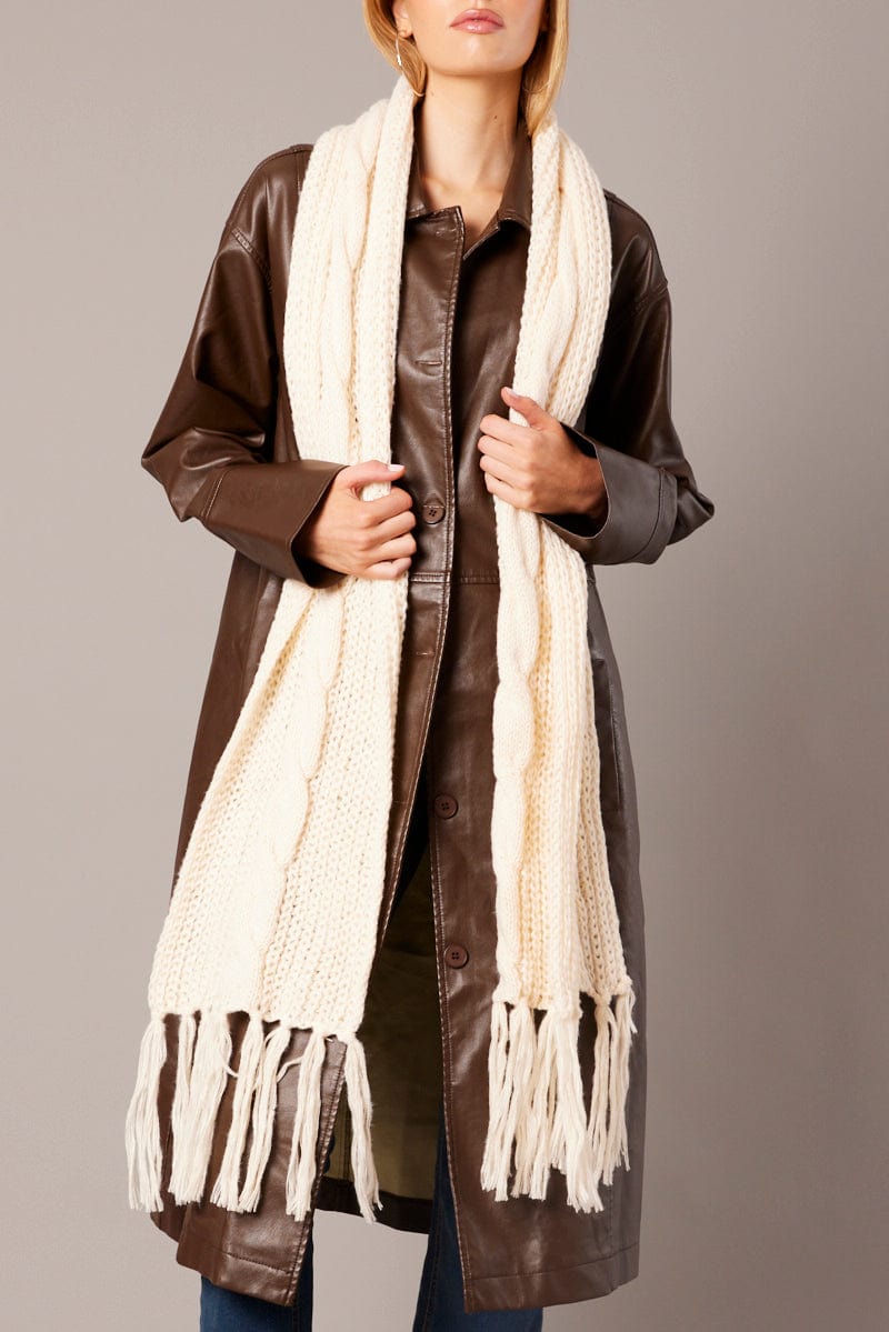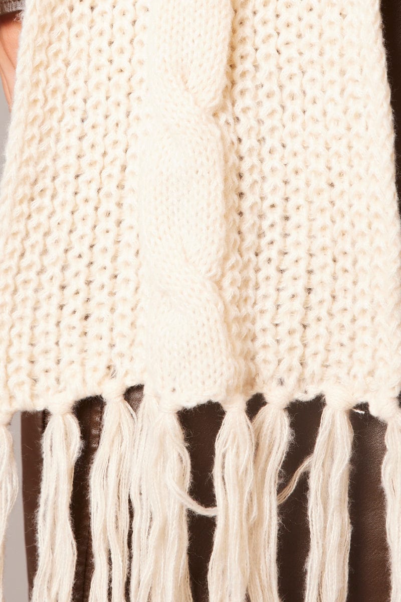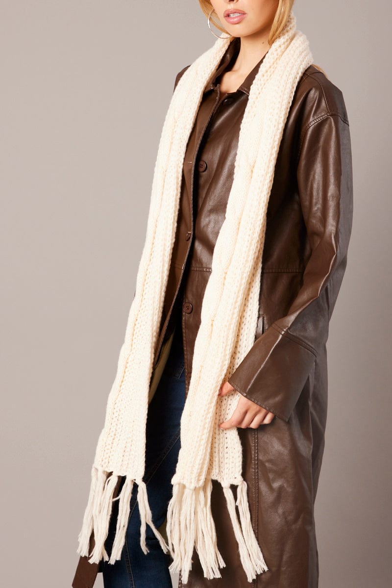 White Knit Scarf with Tassel
