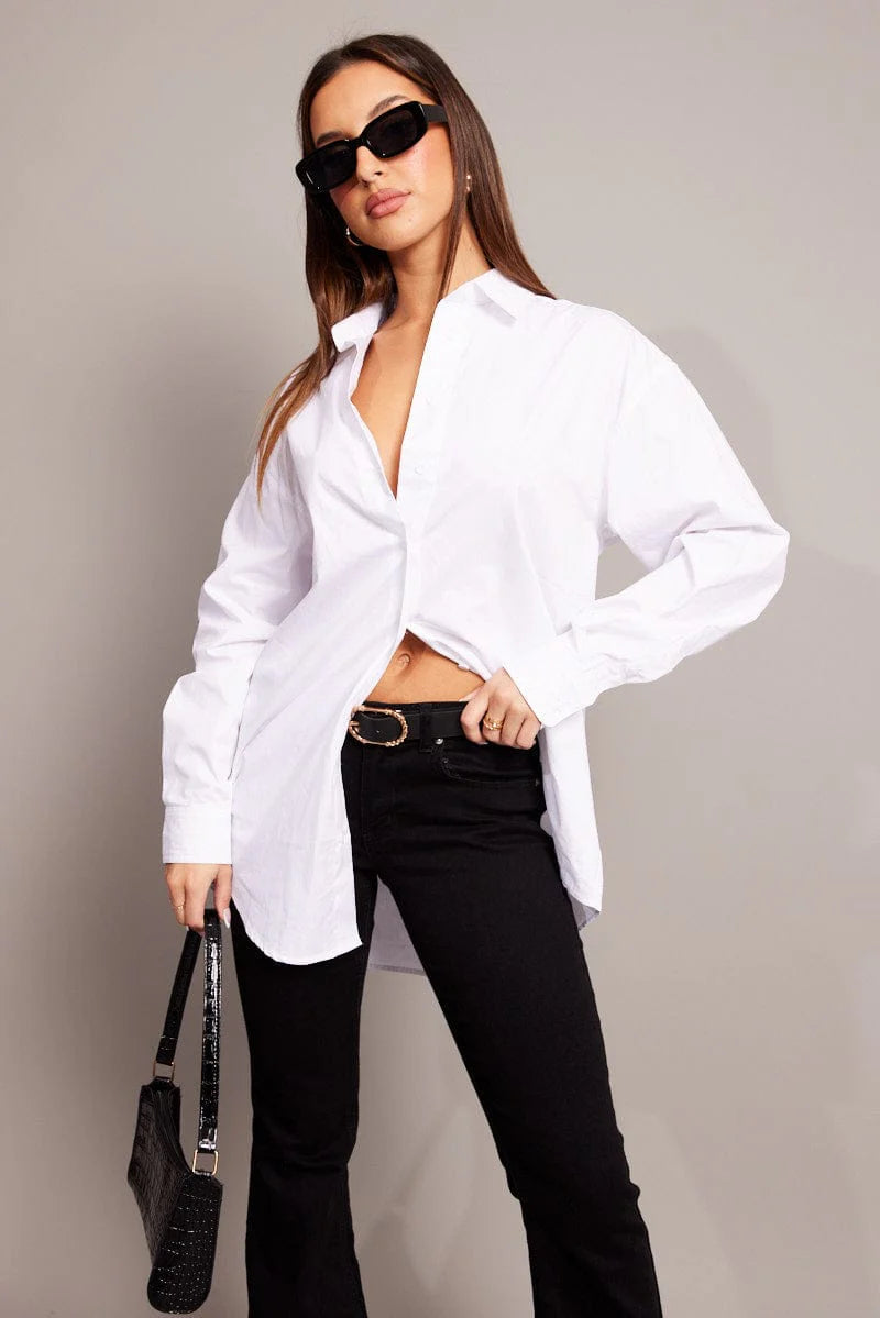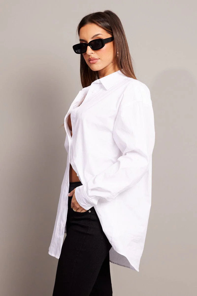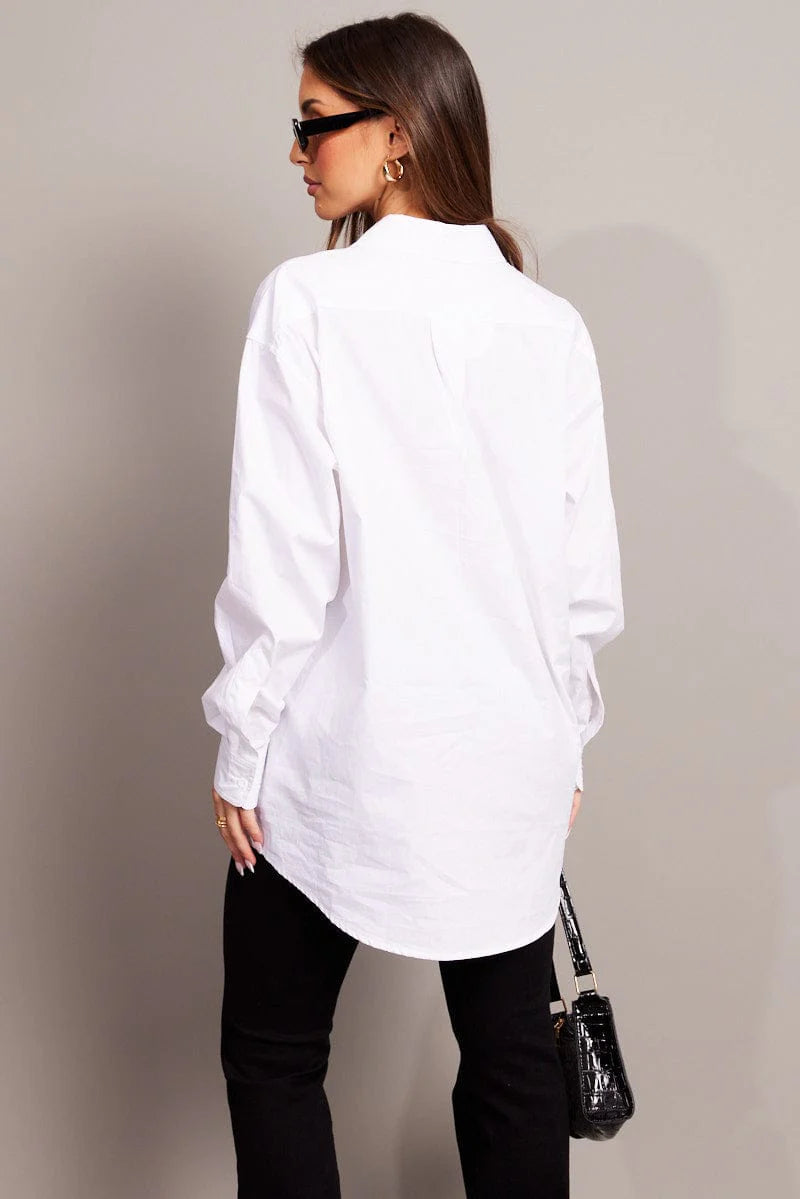 White Relaxed Shirt Long Sleeve Longline
